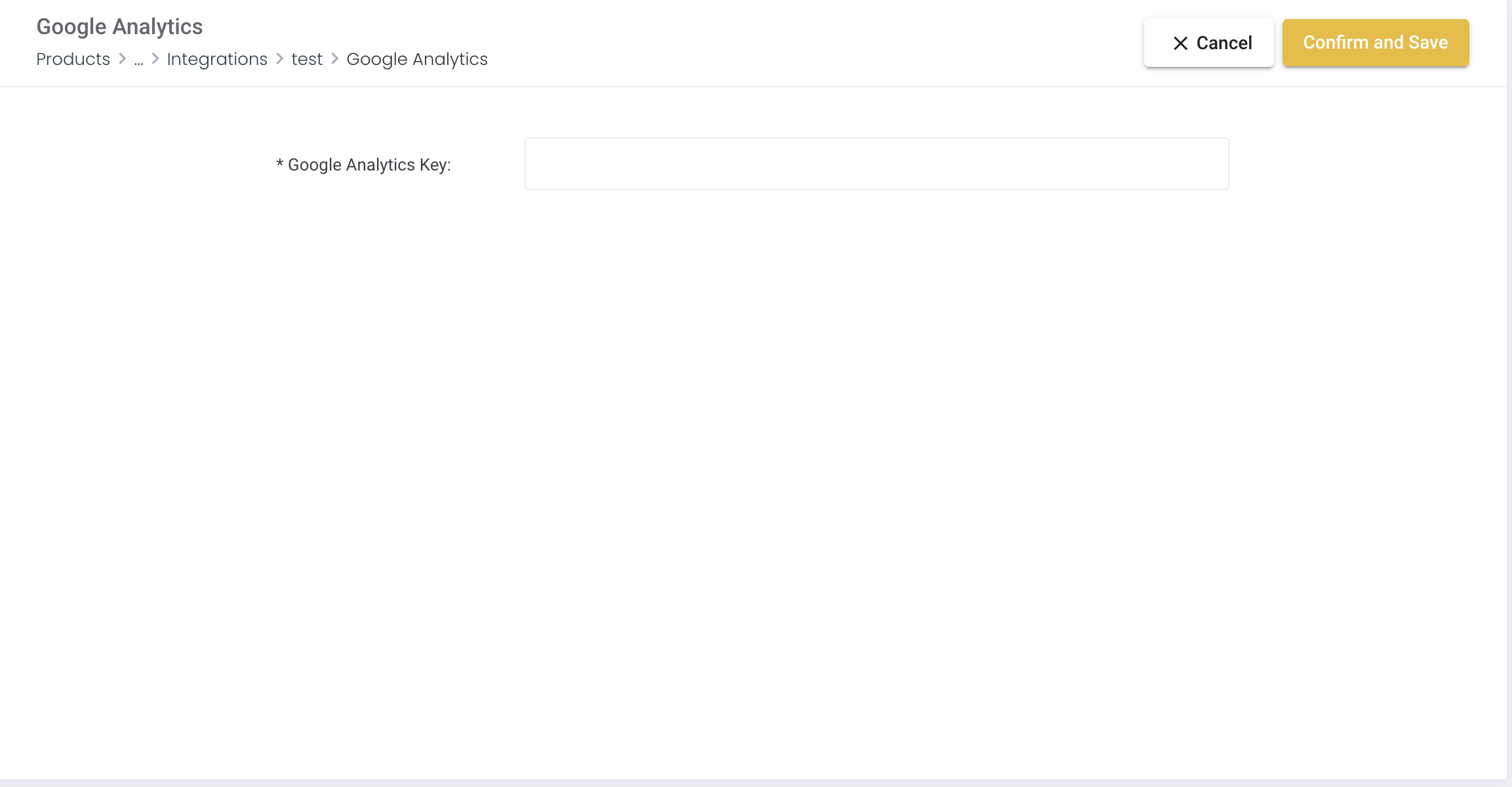 <figure><img src="https://3958097797-files.gitbook.io/~/files/v0/b/gitbook-x-prod.appspot.com/o/spaces%2FHNwbN62wHJkXHE6QwYrR%2Fuploads%2FN6gj4MeplobkmJuojqWv%2Fimage.png?alt=media&#x26;token=dbdde034-550b-4e87-bf3a-edbf96242405" alt=""><figcaption><p>Google Analytics Integration Screen</p></figcaption></figure>